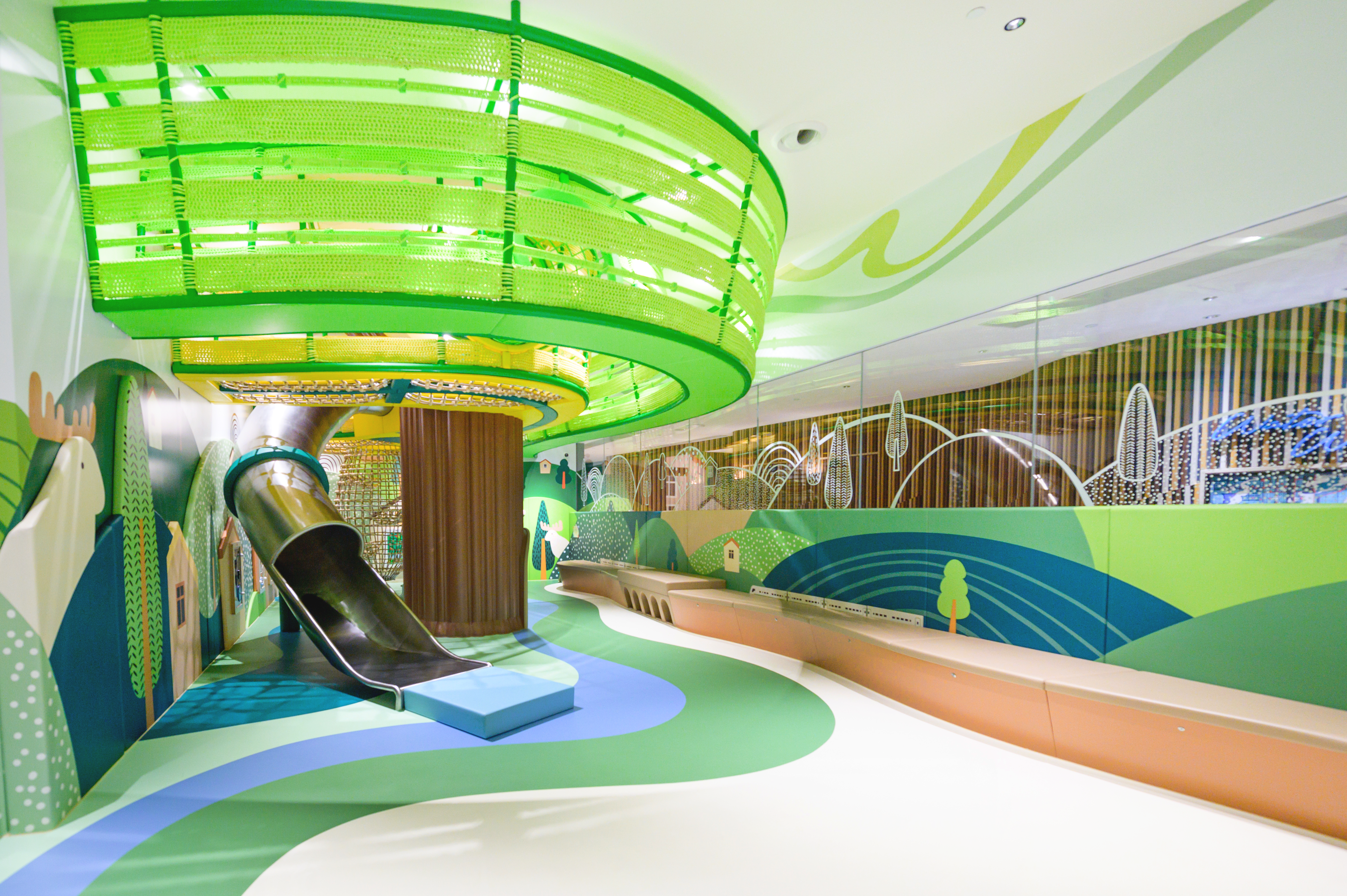 Recognized as a 2024 OPAL Award - Winner, Tuen Mun's Novo Land Playroom features a stunning two-level indoor playground inspired by a Nordic aurora village. This immersive design blends magical northern lights aesthetics with safe play areas, allowing children to explore and learn in an enchanting, award-winning atmosphere.